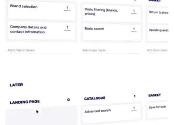 • Mapeo de historias de usuario.Hoja de ruta más eficiente y método de planificación de producto. Cree una visión completa del producto, mapeando la experiencia completa del consumidor. Identificar partes críticas para construir el esqueleto funcional.