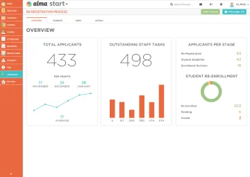 Alma ofrece el mejor sistema de información estudiantil del mercado, que incluye: admisiones, inscripción e inscripción, datos demográficos de los estudiantes, asistencia, programación avanzada, disciplina y calificaciones.