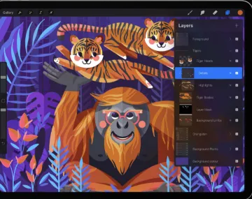 Con Procreate puedes crear geniales tipografías e importar fuentes. Exportar capas de PDF, PNG, GIF. Al usar los pinceles descubra modos de mezcla y experimente el suavizado de presión.
